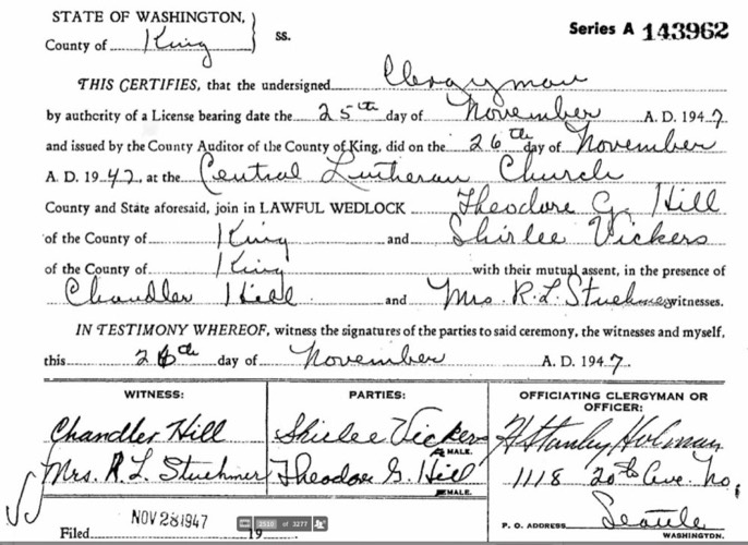Hill-Vickers marriage certificate