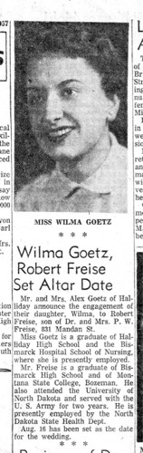Robert Paul FREISE & Wilma Helen GOETZ