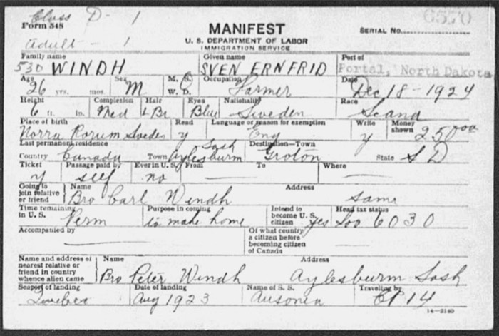 1924.Sven manifest to enter US p.1