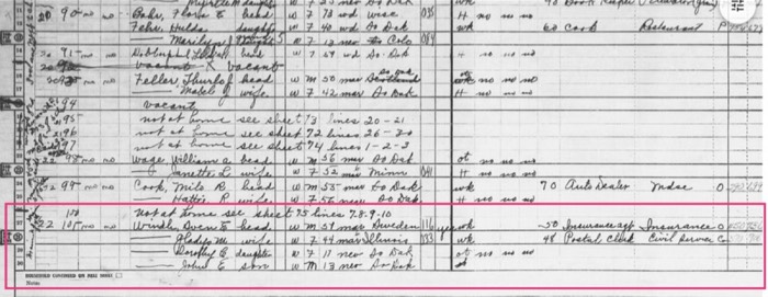 1940 census showing Windh family