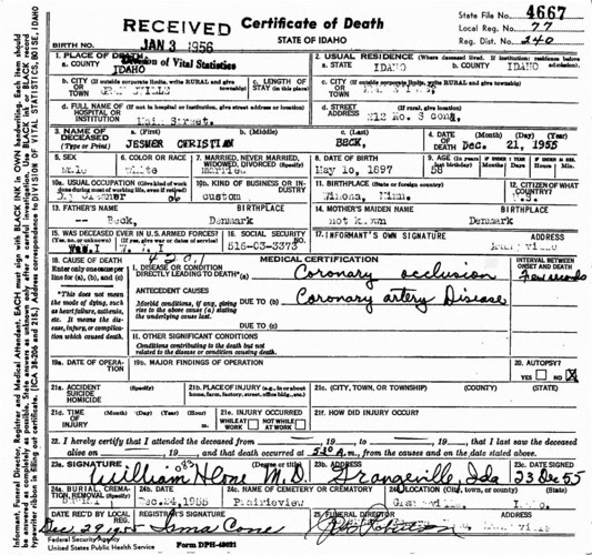 Jesner Beck death certificate